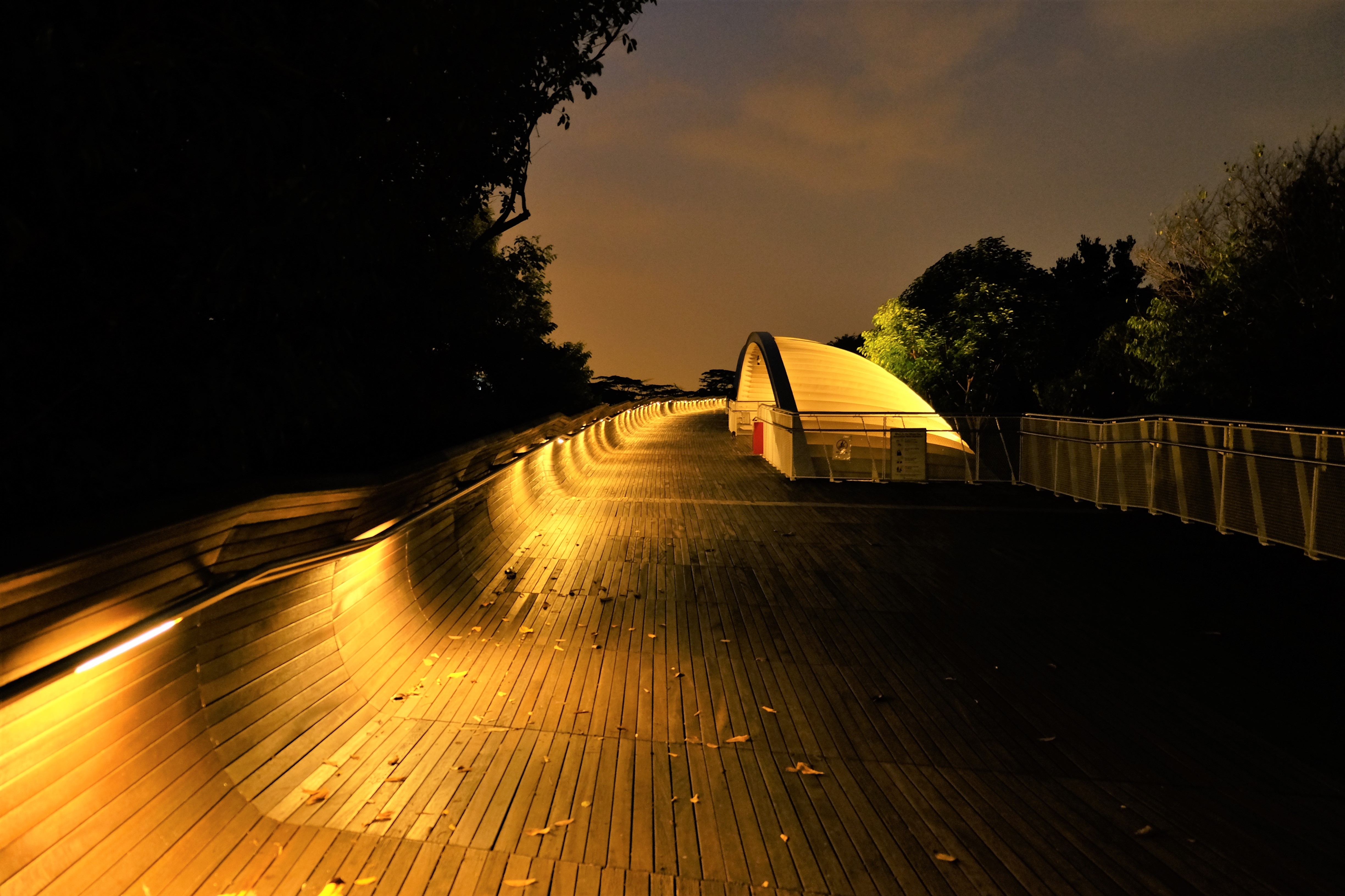 We saw this from the entrance of Henderson Wave. Damian loves the contrasting colours which evokes a tranquil environment (despite the humidity haha).From the pathway, one can see the Singapore residential areas nicely lit up. The picture brings up the contrasting perspective between nature and urbanised Singapore.Love how Damian’s silhouette brings out his head which is merged to the background 😀 (Sandra’s words)We need more night shots like this!
