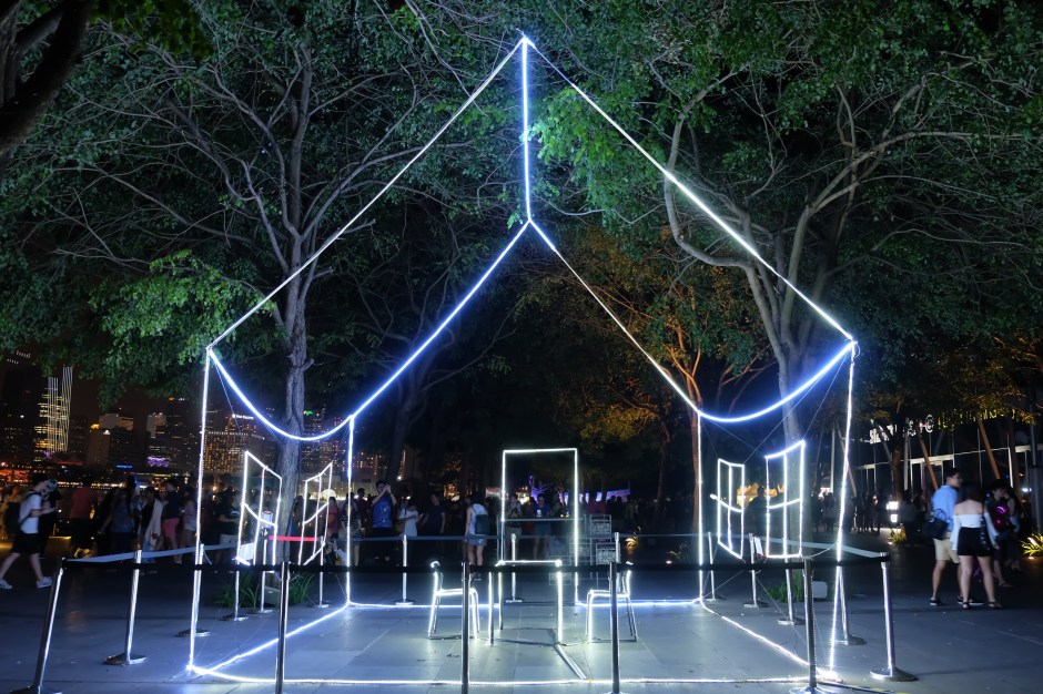 “Northern Lights”: this installation was an attempt to imitate the aurora borealis found in the far ends of the Earth!“Home”: the structure of the house is ‘made’ using LED lights.A long-exposure shot to capture the crowds!“Horizontal Interferences”: these long multi-coloured rubber bands appeared like streams of lights under the powerful lights.