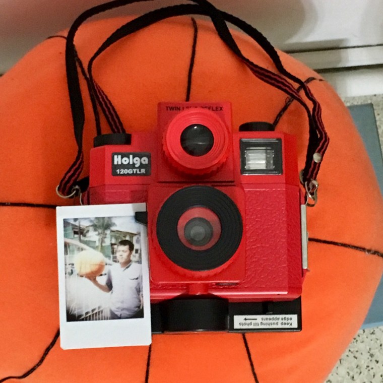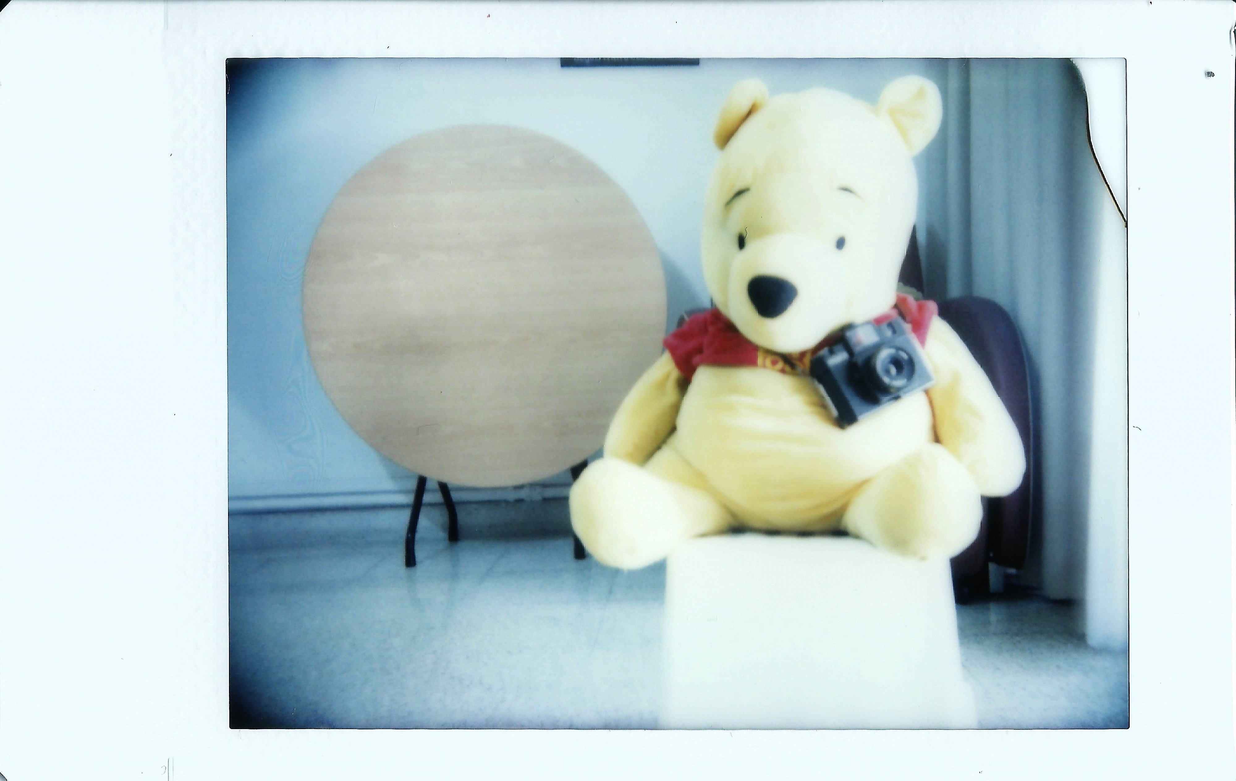 Having our Winnie the Pooh toy as a Holga mascot (and a constant subject for us to focus on). The instant back is not the most sturdy or compliant (given that we had to manually wind the film out), and the instax film was stuck in the rollers several time.Another observation about the Holga GTLR120 is the composition; since the viewing lens is above the capturing lens, we have had to take that into account when taking photos!