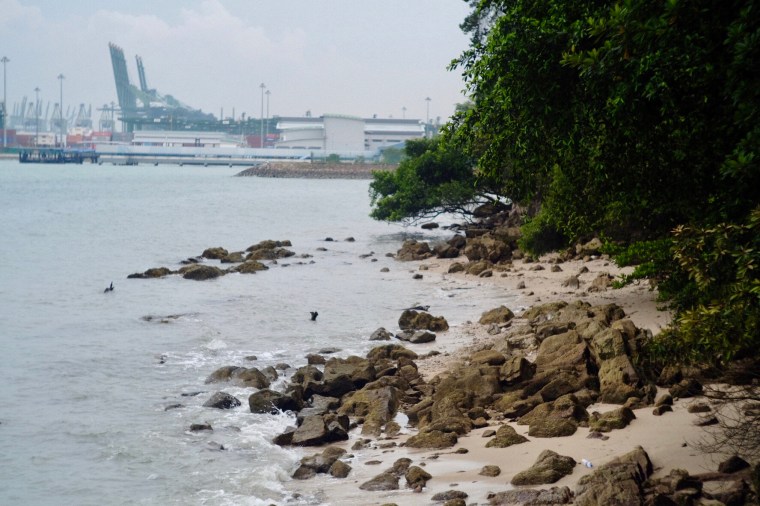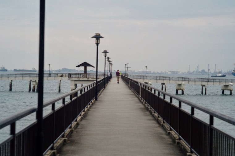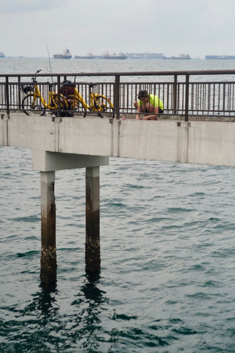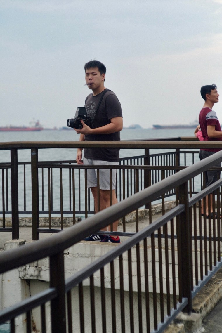 The front view of the Mamiya RB67, with a prism viewfinder.The prism viewfinder comes with a light meter and helps the user focus on the subject better.The Mamiya RB67 is bound to be a head-turner when used outside!At the jetty, locals were seen strolling casually or jogging along the narrow bridge.Across the shore lies many of Singapore’s maritime businesses.It was helpful to have the bridge rail as a support for the Mamiya RB67!