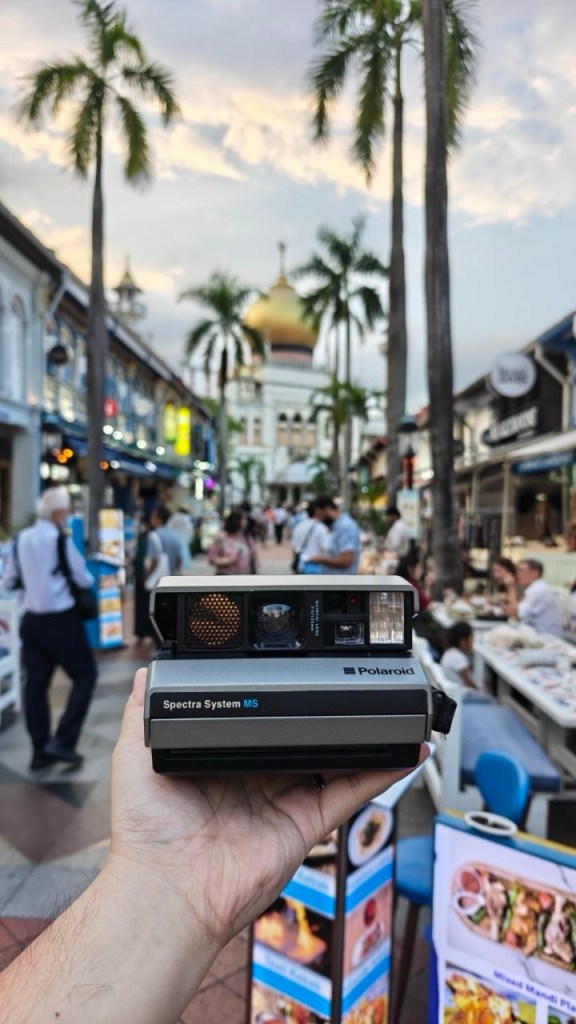 We shot with the Polaroid Spectra System MS, which our friend managed to get secondhand for only THB 200 in Thailand! We were shooting at Kampong Glam, where the iconic Sultan Mosque is famously captured by tourists and locals alike!